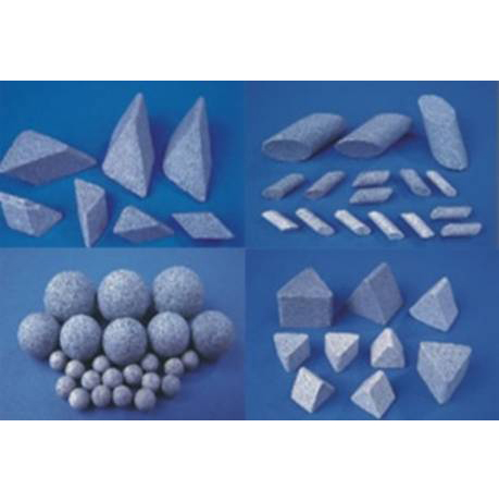 3、高鋁瓷磨料:振動、渦流、離心光飾機等輔料,研磨時利用擠壓摩擦原理,適用于各種材質工件的拋光、輕倒角、鏡面拋光、電鍍前表面細磨